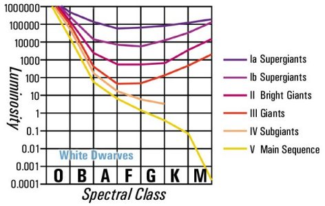 HERTZSPRUNG-RUSSELL DIAGRAM: The Hertzsprung-Russell diagram is a way of showing the relation between spectral class (and thus temperature) and luminosity. |